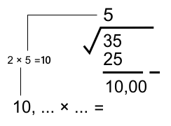 Sampai proses ekstraksi desimal pertama sudah diperoleh hasil √35 ≈ 5,9